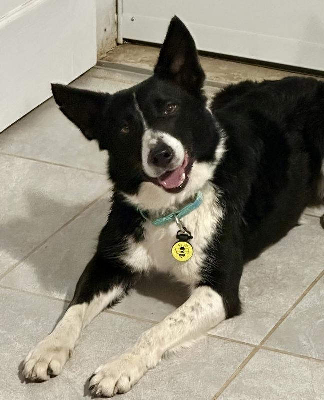 Beautiful silent dog tag that includes important info but doesn't jingle! Love the yellow bee imprint to make it attractive, not just functional. Hook makes it easy to attach and remove, especially nice if you change collars occasionally.