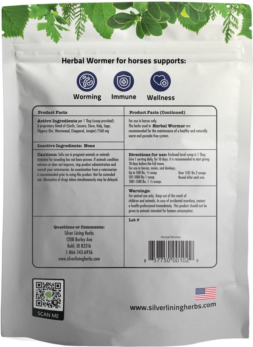 Silver Lining Herbs Herbal Horse Dewormer Supplement, 1-lb bag