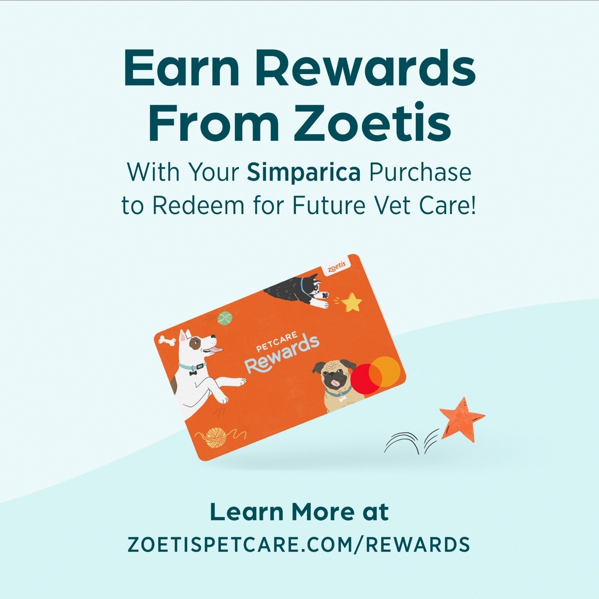 Your 6-or 12-count Simparica purchase may be eligible for Petcare Rewards points. Redeem your points for Rewards toward future vet care and more! Learn More at zoetispetcare.com/rewards