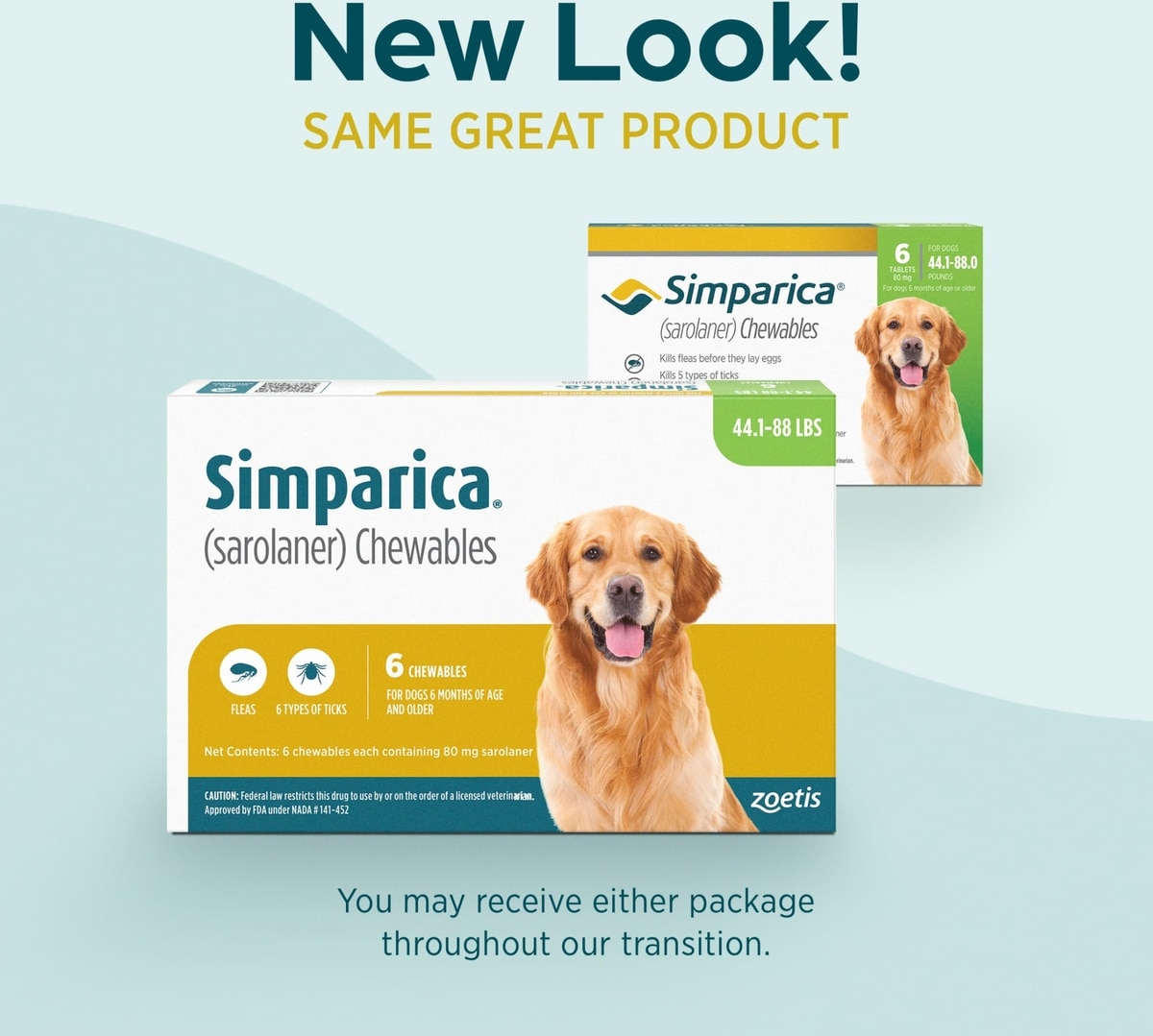 Simparica Chewable Tablet for Dogs, 44.1-88 lbs, (Green Box), 12 Chewable Tablets (12-mos. supply)