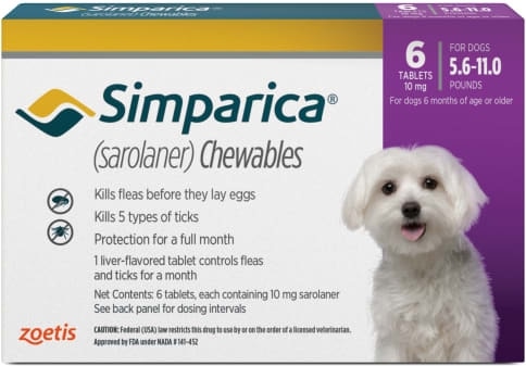 Simparica Chewable Tablet for Dogs, 5.6-11 lbs, (Purple Box), 6 Chewable Tablets (6-mos. supply)
