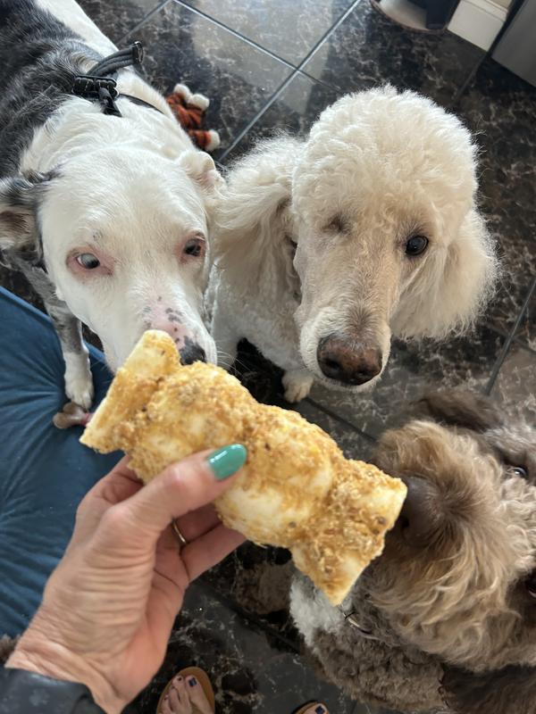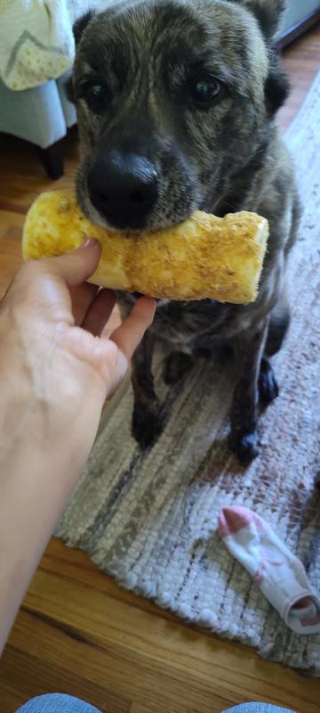 All three of my dogs loved these chews. They were very large and they lasted for quite a while. My only complaint and the reason for four stars is because they are very messy. Make sure your pup stays on a towel or something to chew on them and not your couch or bed.