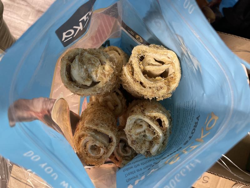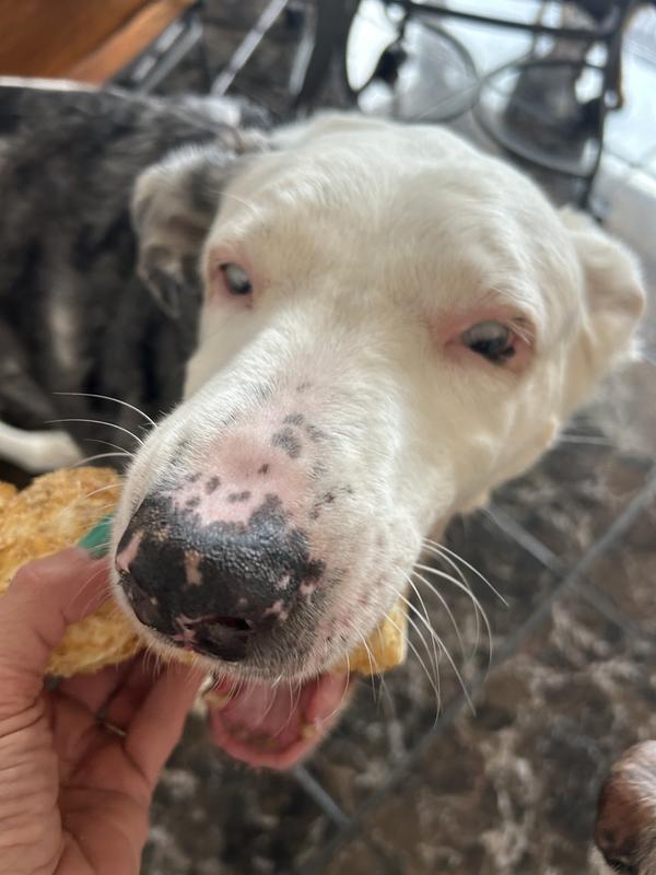 I purchased these after reading the reviews. I always look for things, especially for my golden puppy, that can give me some peace. I had the ears before and they were great. I’m not sure why, but all three of my dogs did not eat these. I thought for sure they would because they were really stinky. They took them like they were going to chew them and then they sat in the yard to feed the ants instead. It might just be my dogs. They smell so bad and I recommend giving them to your dog outside because they are messy with the crumbly bits. I’m sad my dogs don’t like them. They’re huge!