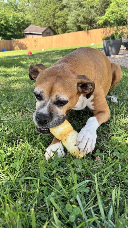 I gave these to both my boxers (10 months and 9 years). I liked they are long lasting, good size for my 60 lb dogs and it kept them busy for a LONG time!