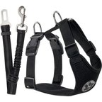 This car harness features an added seatbelt to help keep your dog safe and secure while on the road and can connect to a leash for use as an everyday harness.