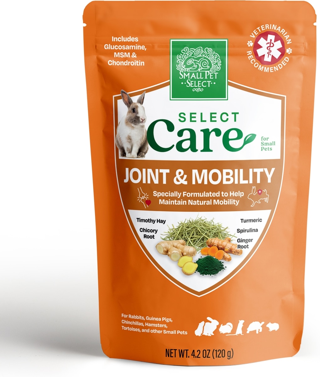 Small Pet Select Care Natural High Fiber Timothy Hay Based Joint & Mobility Support Treat Supplement for Smallpets, Brown, 4.2-oz bag