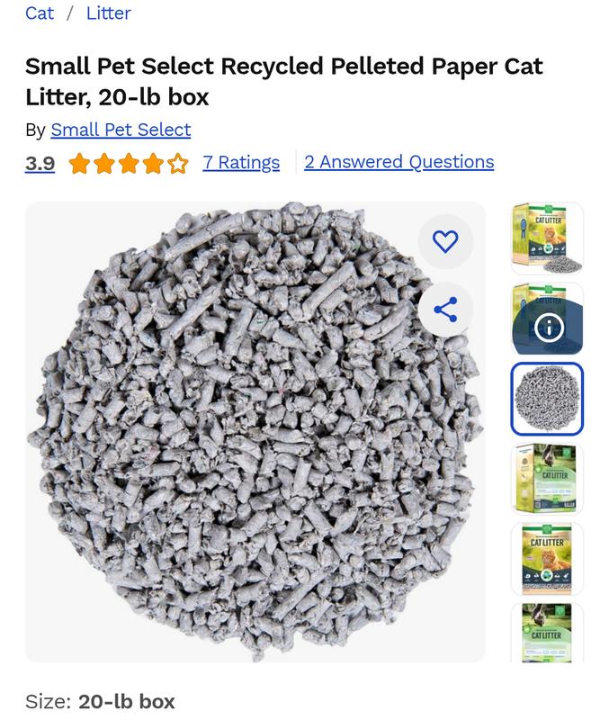 Small Pet Select Recycled Pelleted Paper Cat Litter, 20-lb box
