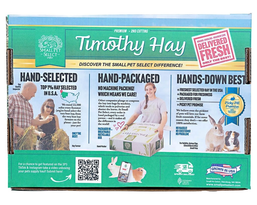 Every box is hand-packed to maintain freshness, minimize dust, and ensure your pet gets beautiful, consistent hay from top to bottom.
