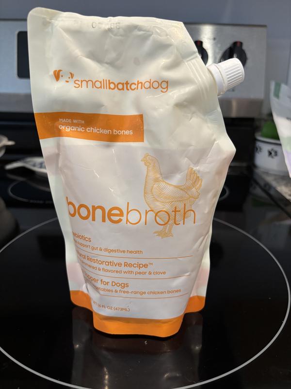 - DealSmallbatch Pets Organic Shelf Stable Adult Beef Bone Broth Grain-Free Liquid Wet Dog Food Topper, 16-fl oz bottle$12.99 Chewy Price$12.34 Autoship PricePromo, Spend $100, Get $30 eGift Card with code NEWYEAR +1 deal