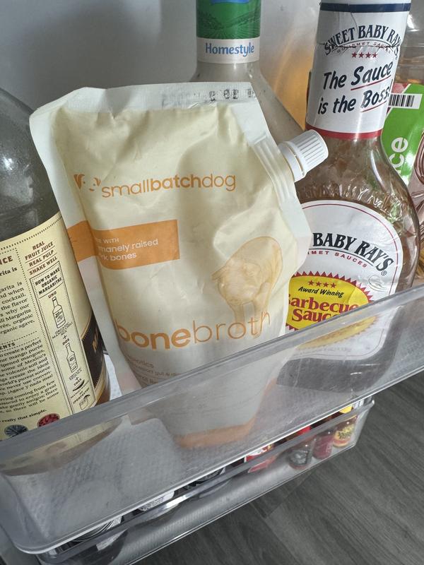 This has been a fantastic addition to my dog’s meal routine. Here’s a breakdown of my experience with the product: Quality of Ingredients: 5/5 This pork bone broth is made from humanely raised pork, which gives me peace of mind that the product is ethically sourced. The fact that it is grain-free is also a big plus, especially for dogs with sensitive stomachs or food allergies. The ingredients are clean and natural, with no unnecessary fillers or artificial preservatives. Taste Appeal: 5/5 My dog absolutely loves the taste of this bone broth! The moment I add a bit of this liquid topper to his kibble, he gets excited and eats his meal with more enthusiasm than ever. The pork flavor seems to be a big hit, and it smells fresh without being overpowering. Convenience: 4/5 The 16-fl oz bottle is a decent size for smaller to medium dogs. It’s shelf-stable, so I don’t have to worry about refrigeration until it's opened, which is really convenient. However, once opened, it needs to be used within a few days and kept refrigerated, which may be a challenge for owners of smaller dogs who won’t finish the bottle quickly. Health Benefits: 5/5 Bone broth is known for its health benefits, especially when it comes to supporting joint health, digestion, and overall well-being. Since adding this to my dog’s diet, I’ve noticed improved digestion and shinier fur. It’s a great way to sneak in some extra hydration as well. Price: 4/5 The product is a bit on the pricier side, especially for regular use. However, the quality justifies the price tag, and it’s worth it for the peace of mind that you’re giving your dog something healthy and ethically produced. Overall Rating: 4.5/5 The Smallbatch Pets Pork Bone Broth is an excellent choice for pet parents looking to boost their dog’s meal with a nutrient-rich, flavorful topper. While the price and limited fridge life once opened are minor drawbacks, the quality and positive effects on my dog’s health and appetite make it a worthy investment. Highly recommended for dogs of all sizes, especially those on grain-free diets!