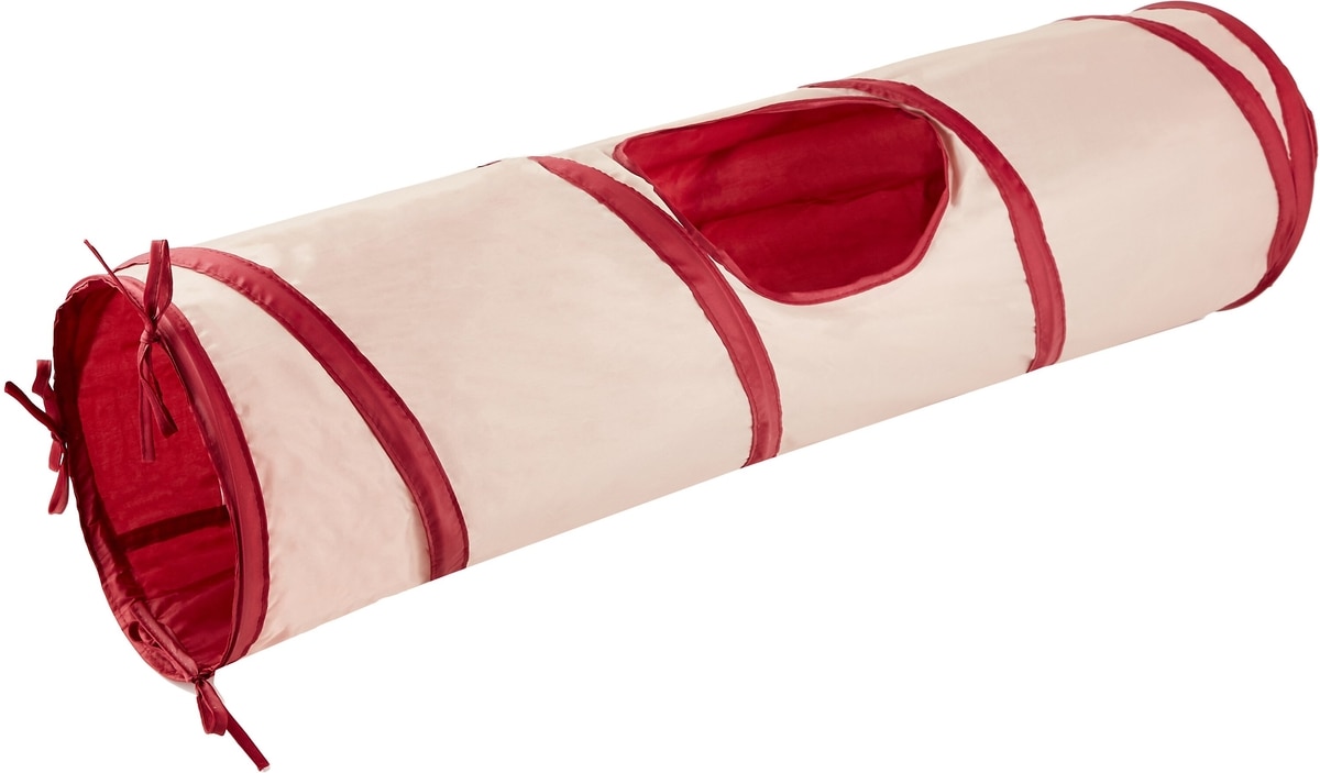 My cats spend half their day running into this tunnel and rolling it around the house, they really seem to like it. The tunnel that we got is a teal color instead of the red listed but that’s okay it’s cute and the cats enjoy it.