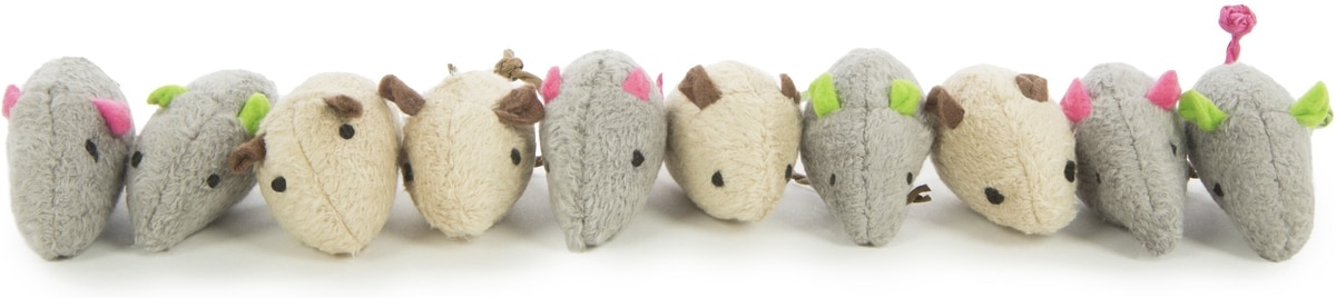 What cat doesn't love mice and batting them around, chasing them, gnawing on them etc? These are great. A bag of 10 keeps you from trying to find them. Then when you do a big clean and move furniture around, you find the hidden ones!