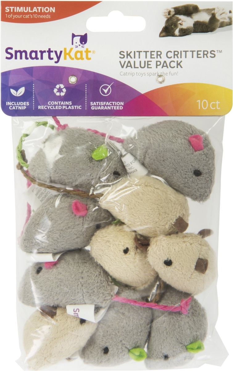 - Skitter Critters are perfect for stimulating your purring pal with irresistible catnip-filled mice for batting, carrying, and hiding.