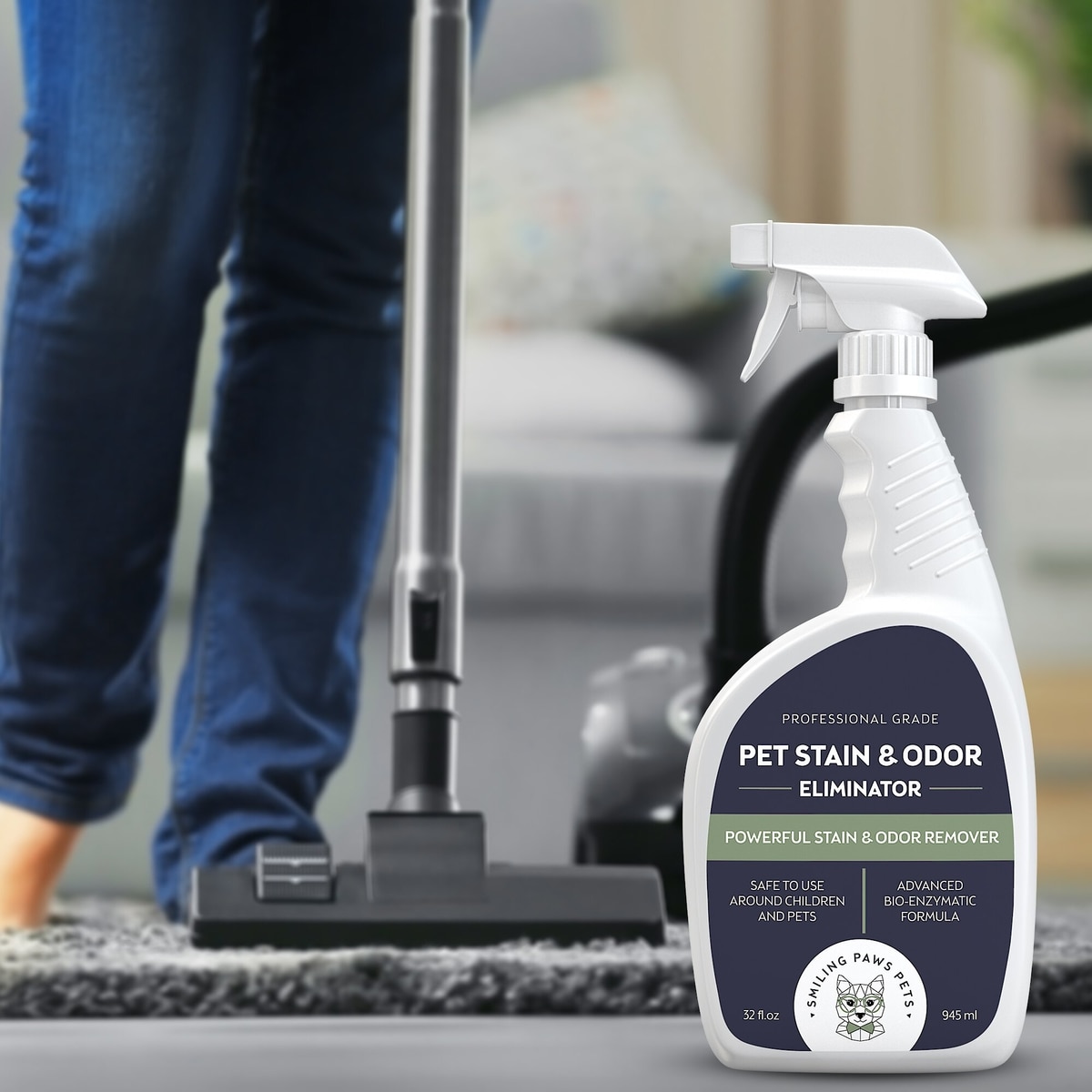 This formula can be used on hardwood floors, carpets, vinyl, upholstery, rugs, litter boxes, tiles, grass, concrete and more.