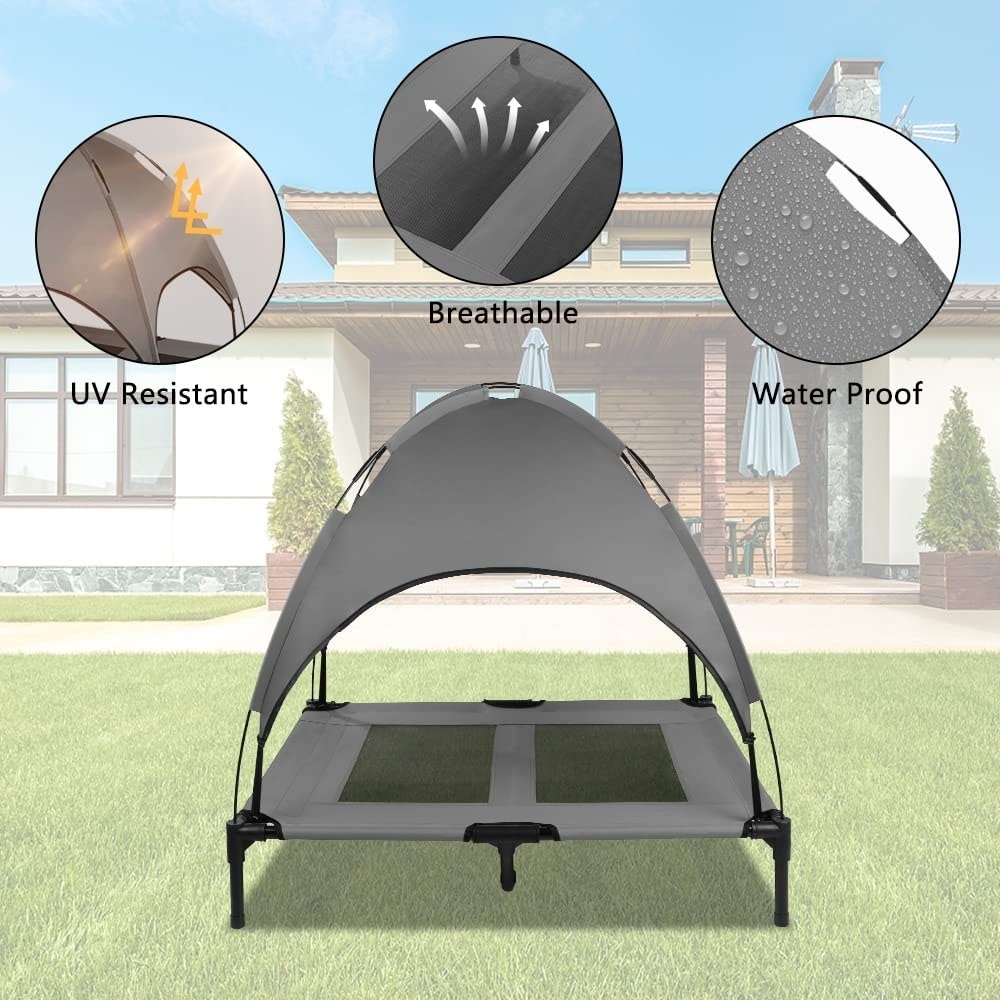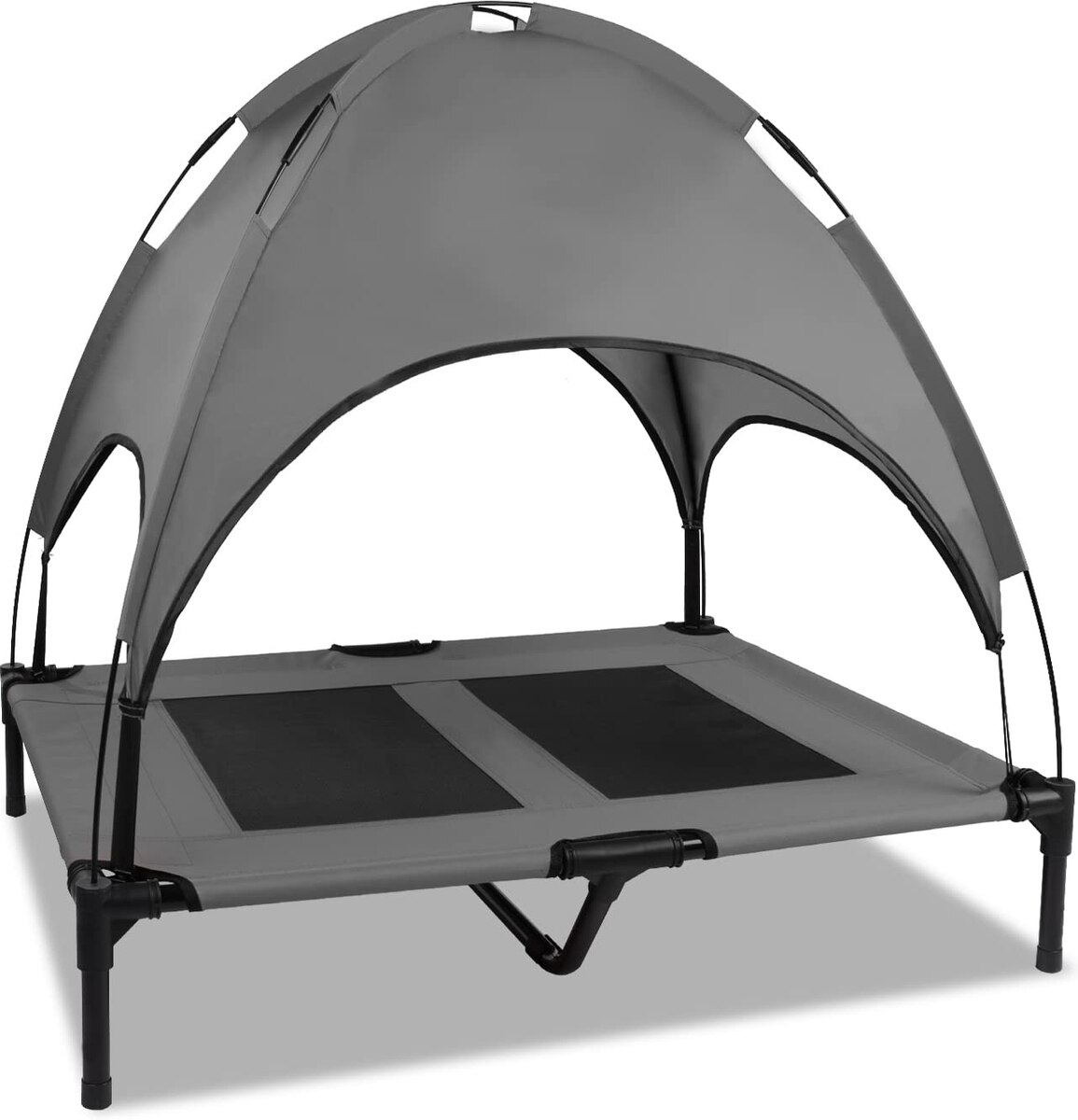 SMONTER Elevated Outdoor Canopy Dog Bed, Grey, Large