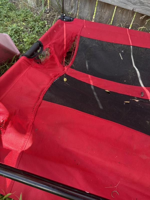 The entire one side of the bed surface has torn. It’s essentially useless for our pooch. Too expensive to fall apart in 30 days.