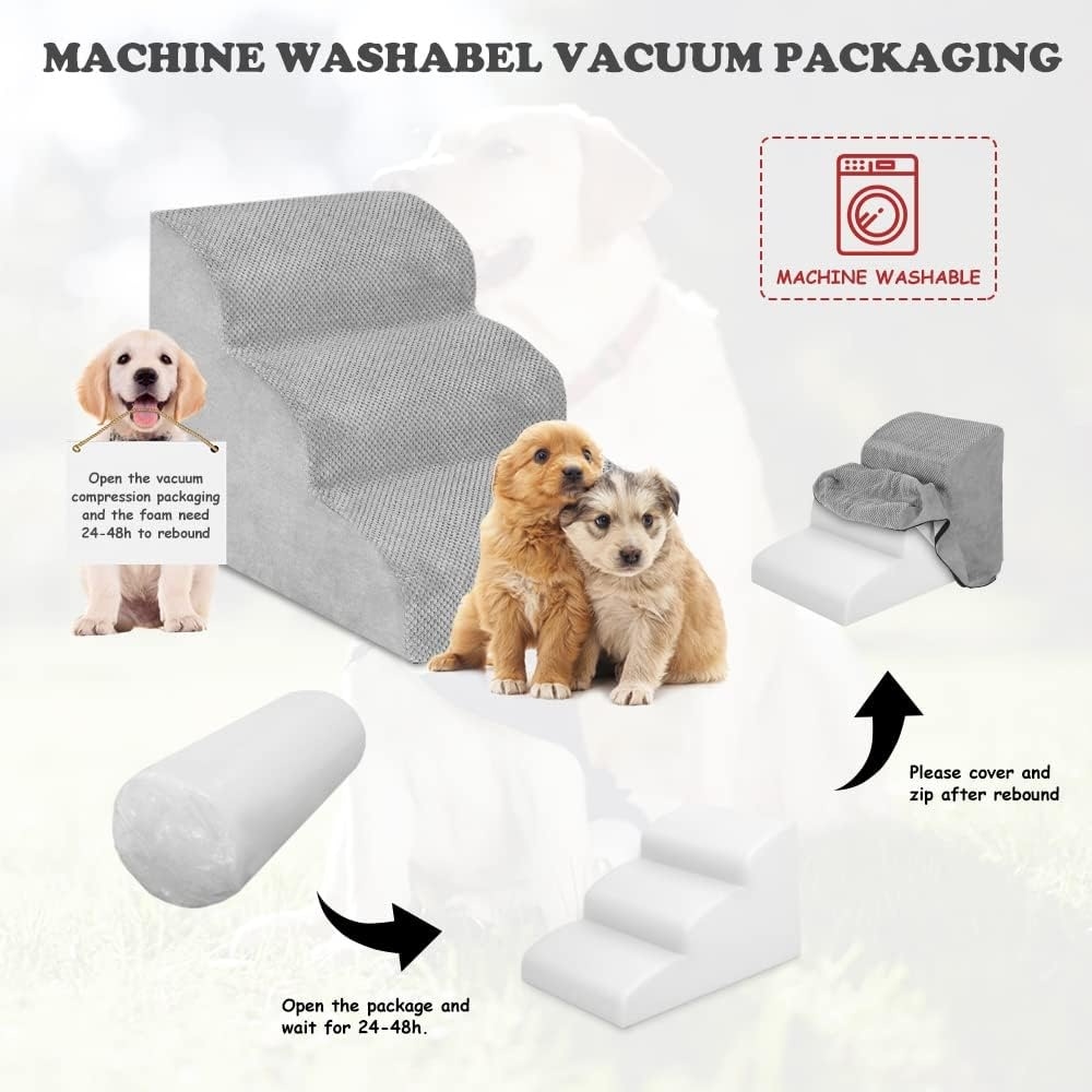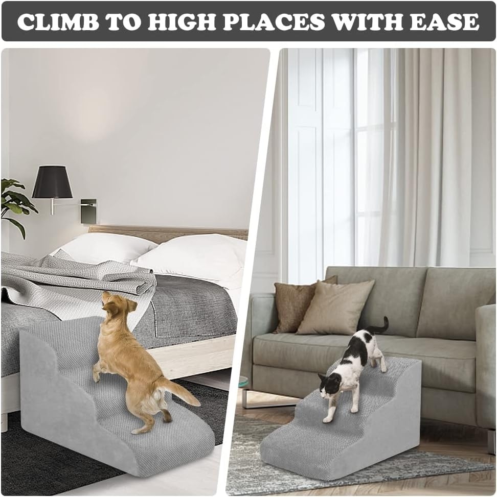 SMONTER HIDOG Non-Slip Soft Foam High Beds & Couch Dog Stairs & Ramp, Grey, 3 steps