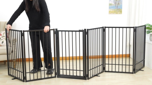 Meets our needs to limit puppy’s access to unseen parts of the house. Love that it is free standing - the 10yo is able to pass by nosing a far panel open (we do have to then go close bc she doesn’t) and 12 week old views it as an impermeable wall.