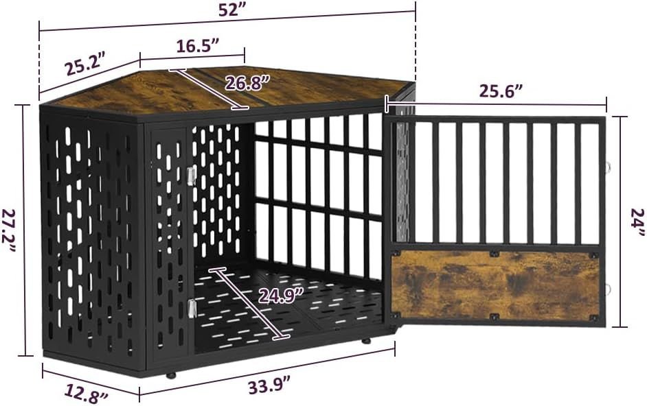 - Heavy-duty steel and particle board are durable and make for a secure, stylish kennel.
