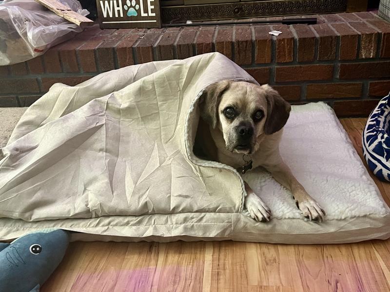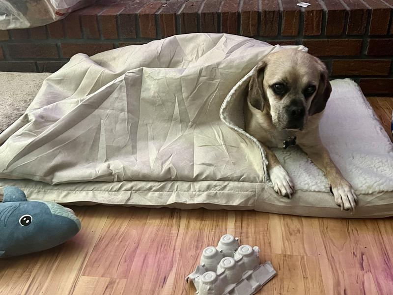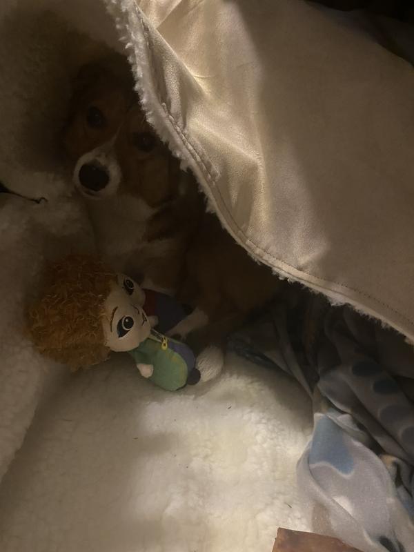 I was hoping our beautiful rescue girl would love this bed. She was actually afraid of the little blanket portion. The corgi on the other hand absolutely loved the bed. It’s very well made and definitely amazing quality. Would definitely suggest to all my dog parent friends.