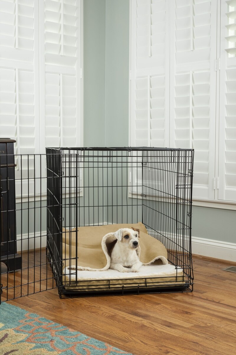 This crate bed is amazing. Our lab mix has epilepsy and anxiety. He sleeps in his crate in my bedroom at night and this keeps him calm. The bed comes compressed