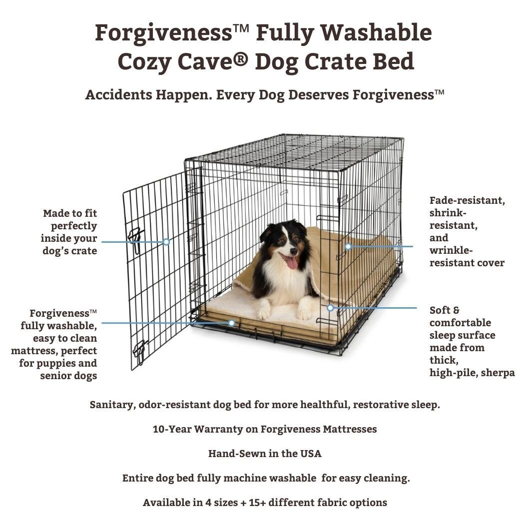 Snoozer Pet Products 100% Washable Forgiveness Cozy Cave Orthopedic Dog & Cat Crate Bed with Removable Cover, Khaki, Large