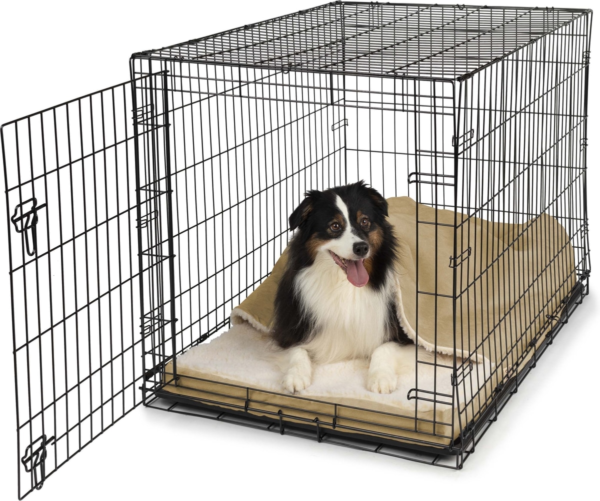 First of all I’m very pleased with the clean modern look of this soft plush cave bed. A lot of dog beds aren’t modern looking but this one hit the mark on looks, quality and how soft and plush it is. It is a great bed for the crate but is just as good out of the crate. The thick pad gives a lot of support which is good cause my 110 mixed breed boy unfortunately does have some joint issues. He doesn’t really use the cave part much but I’m sure other dogs will love it. I’m not sure who loves the new bed more, my dog or cats lol. In my house this bed is dog and cats approved!