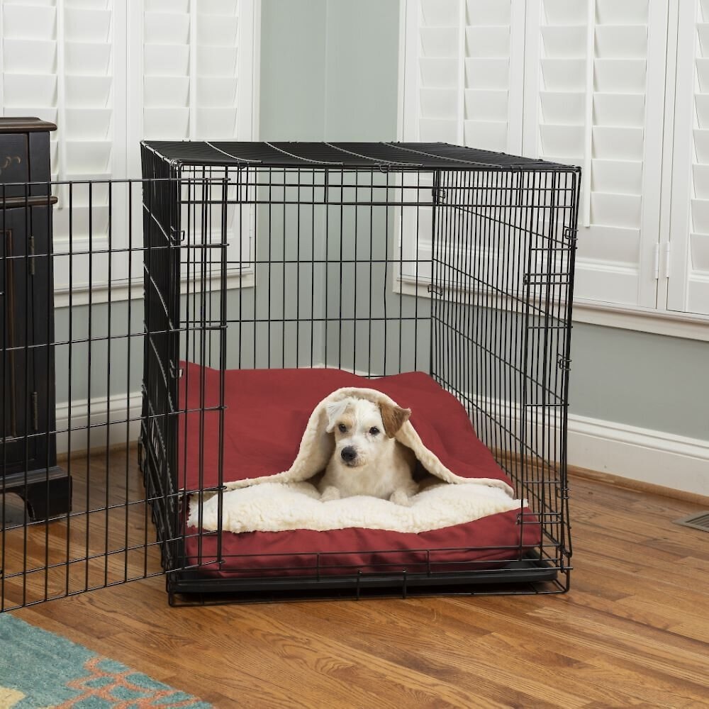 Snoozer Pet Products Poly Cotton Crate Cozy Cave Covered Dog Bed with Removable Cover, Red, Small