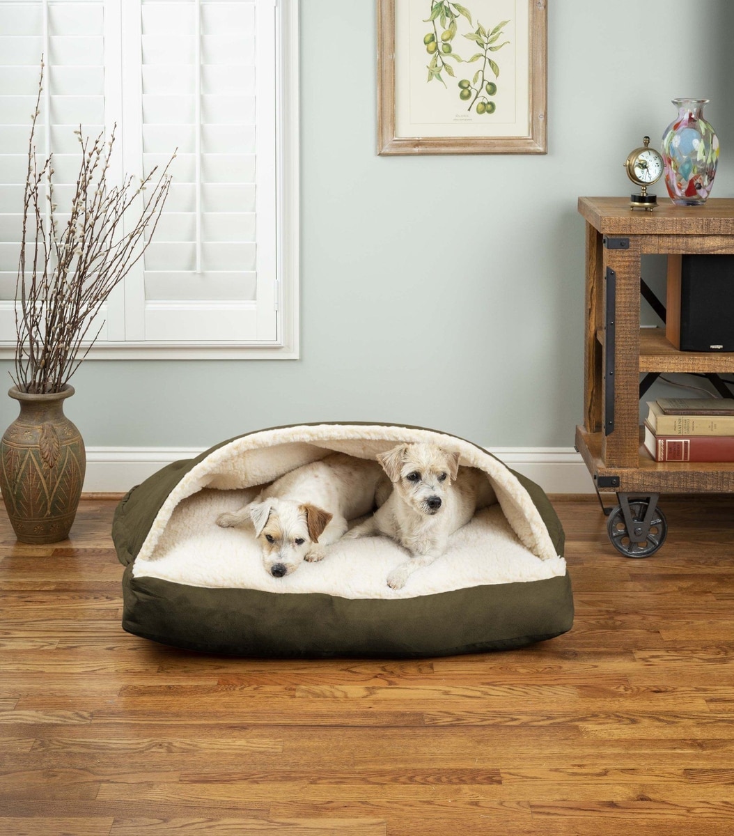 Snoozer Pet Products Poly Cotton Rectangle Cozy Cave Covered Dog Bed with Removable Cover, Olive, Large