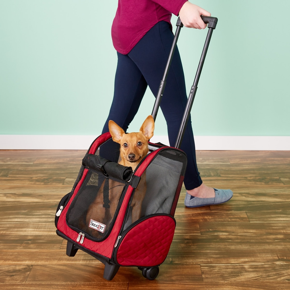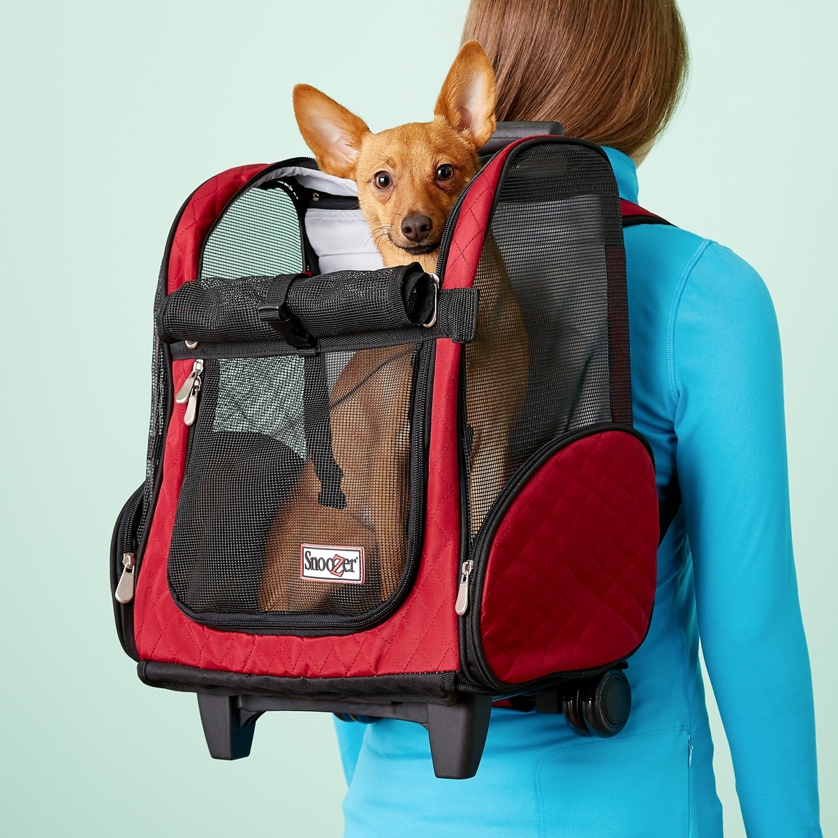 Snoozer Pet Products Roll Around 4-in-1 Travel Dog & Cat Carrier Backpack, Red, Medium