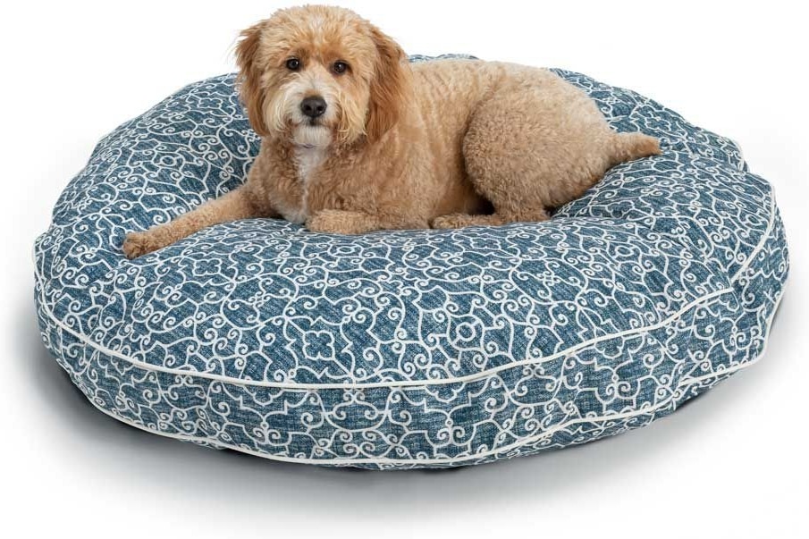 Snoozer Pet Products Round Indoor & Outdoor Dog & Cat Bed with Removable Cover, Blue White, Large