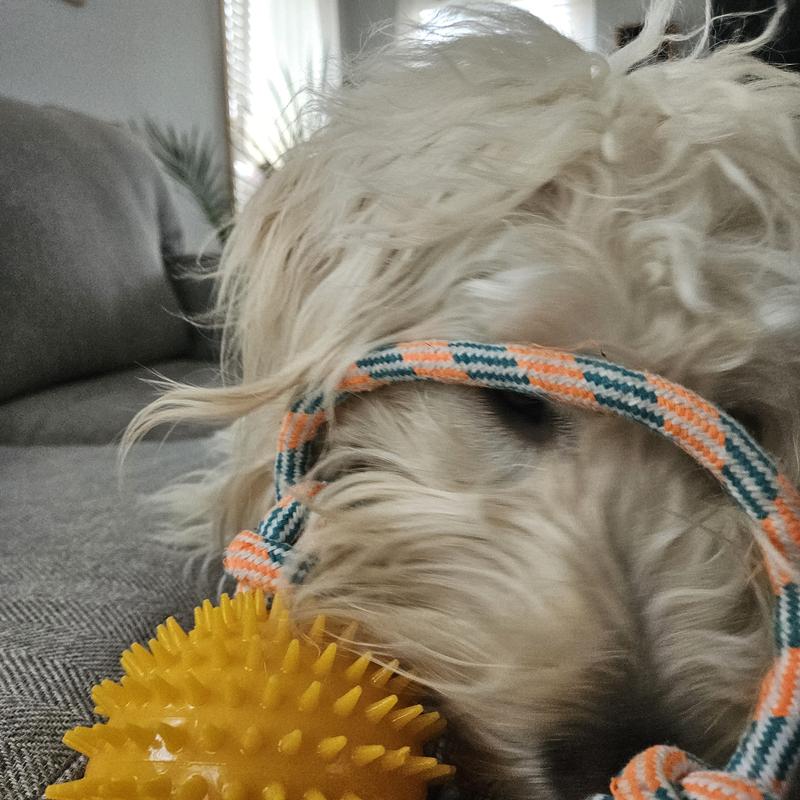 My Golden Doodle loves the rope and the ball!great quality.Thank you!