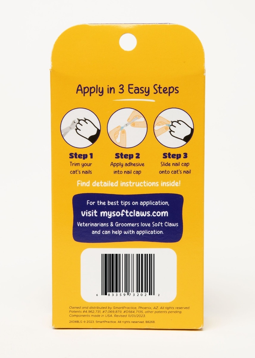 It is recommended that Soft Paws only be applied to cats who live indoors for the safety of the cat. The vinyl nail caps help prevent the scratching damage that is caused by the cats’ claw, but also reduce their ability to defend themselves. When a cat is outdoors, he/she may be faced with a predator and the capped nails will impair his/her ability to defend themselves.