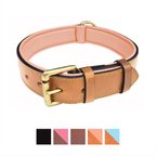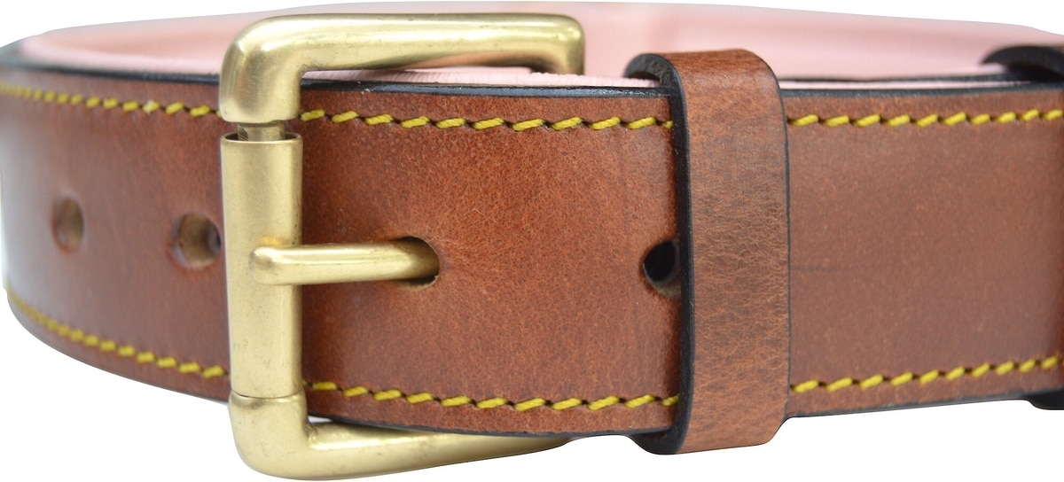 Soft Touch Collars Leather Two-Tone Padded Dog Collar, Brown Pink, Large