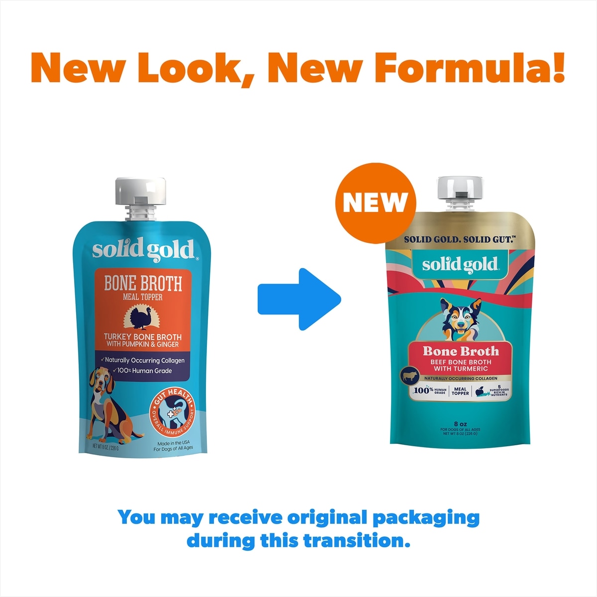 - Solid Gold Turkey Grain-Free Bone Broth with Pumpkin & Ginger Dog Food, 8-oz pouch$4.47 Chewy Price$4.49 List Price$4.25 Autoship PricePromo, New Customers Only: Spend $49+, Get $20 eGift Card
