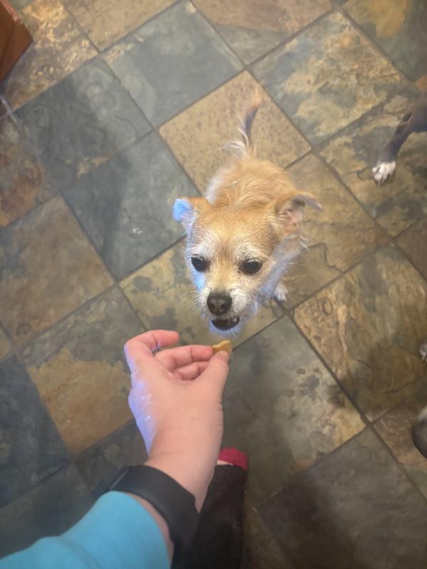 I have three pups and they are all picky eaters. They will put their noses up at all kinds of treats. I was hesitant when getting these because I didn’t want them to go to waste if they didn’t like the taste because that seems like what happens a lot of the time. I was SOOOO pleasantly surprised when not just one, but all three gobbled these up. What? How? My one year old pup just loves these and tries to steal them from my other two. They all from time to time suffer from soft stools so this was great to try to see how it could change their tummy health. Since taking them, the poops have been firmer and easier to pick up. Very happy about that. Will keep this going! So far so good. Thank you solid gold!