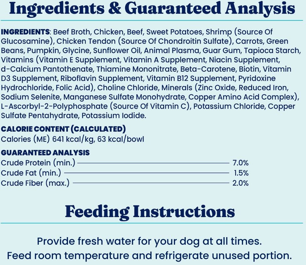 - Solid Gold Beef Bone Broth with Turmeric Dog Food Topper, 8-oz pouch$3.99 Chewy Price$4.49 List Price$3.79 Autoship PricePromo, New Customers Only: Spend $49+, Get $20 eGift Card