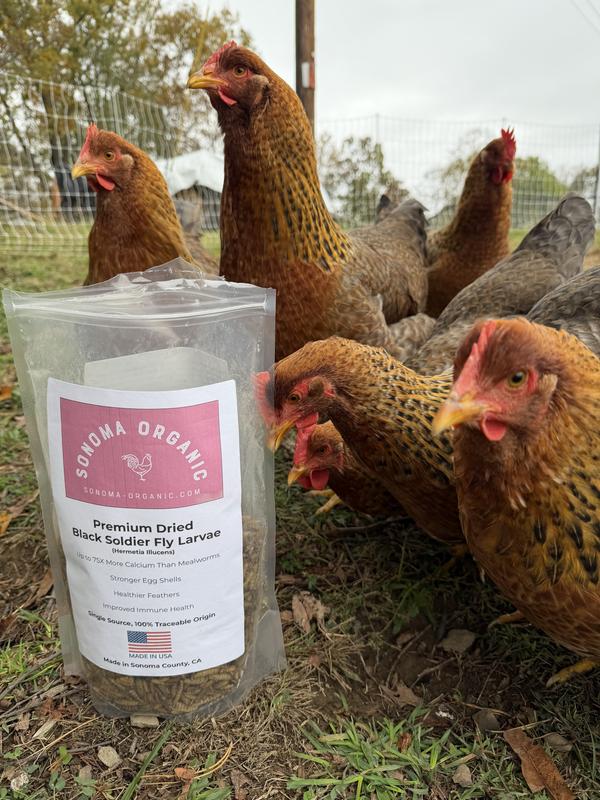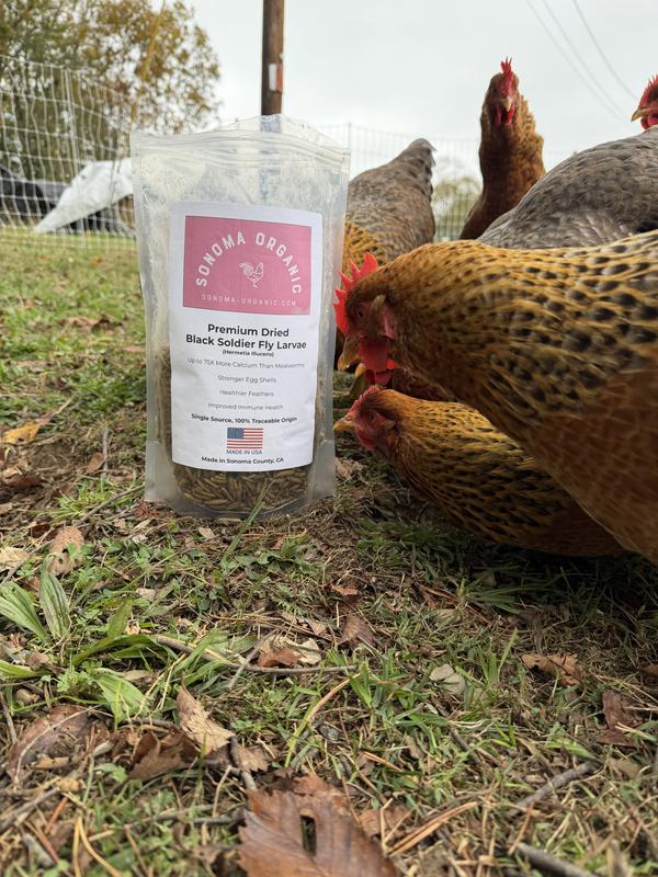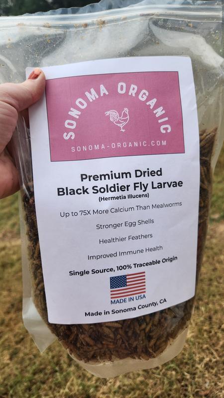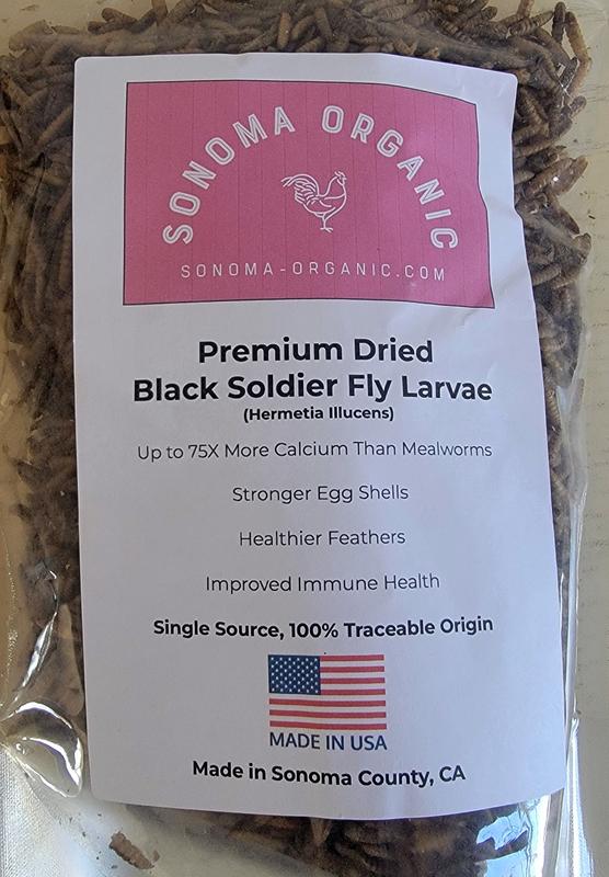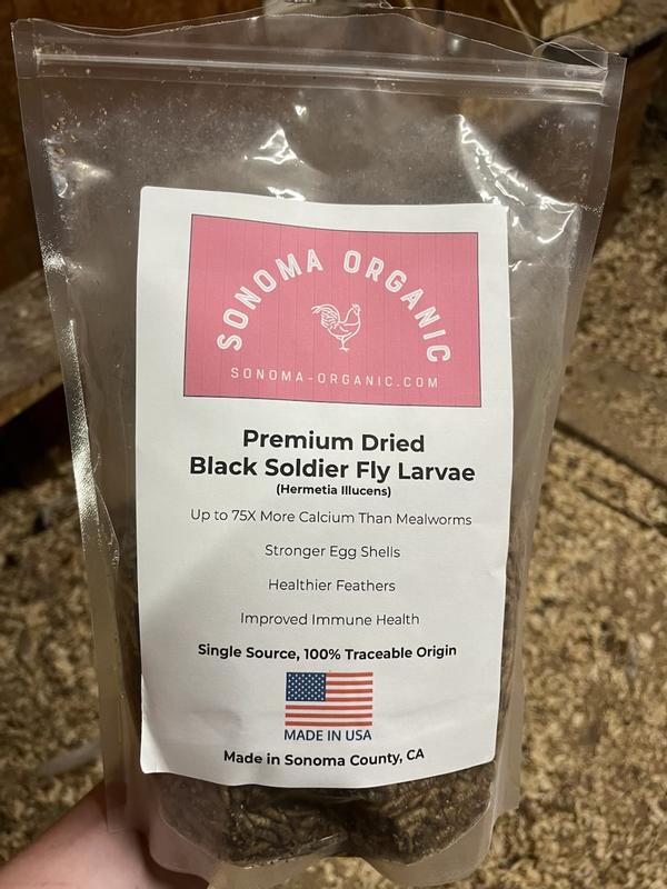 http://photos-us.bazaarvoice.com/photo/2/Y2xpZW50Y29uZmlnaW1hZ2VzOm1yY2hld3k/f5ebb739b6bb75e3d7a6d5d1e6bd9a69.png Your review is important to us! Submit your review to remain eligible for future offers Sonoma Organic Dried Black Soldier Fly Larvae Chicken Feed, 1-lb bag is a tasty, healthy treat for your chickens. My chickens seemed to notice right away that these were fresher, plumper, softer soldier fly larvae and loved them!