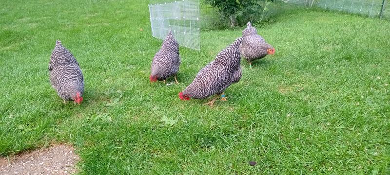 I have only one elderly hen left at the moment . She is 7 1/2 years old ! At her age , and since she just moulted, she is not laying eggs, but I do want her to have