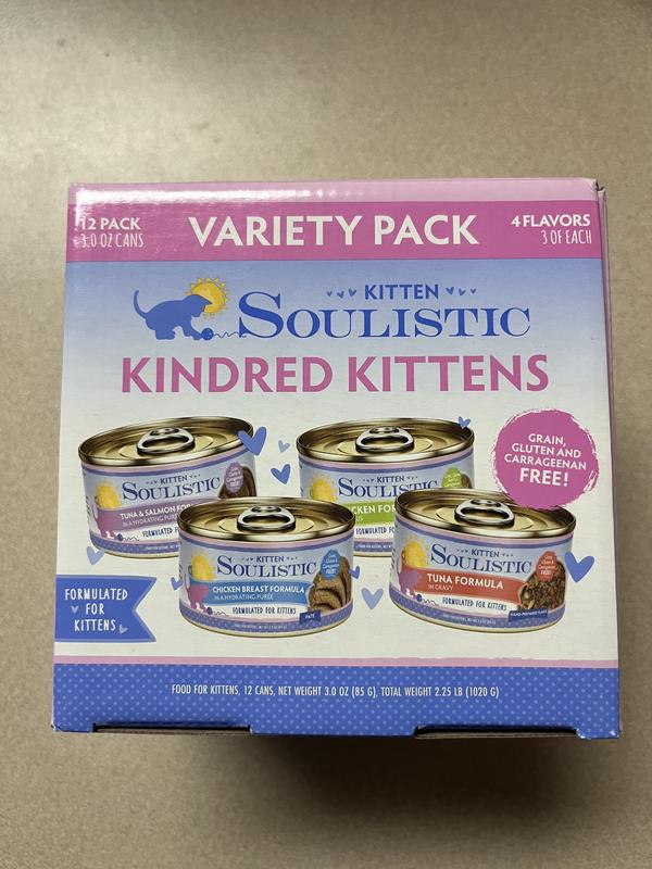 Soulistic Kitten Kindred Kittens Variety Pack Wet Cat Food (3-oz can, case of 12) I was excited to try this variety pack for my kittens, especially since Soulistic