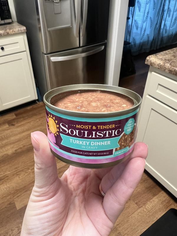 - DealSoulistic Moist & Tender Beef Dinner in Gravy Wet Cat Food, 3-oz can, case of 12$21.99 Chewy Price$20.89 Autoship PricePromo, Spend $100, Get $30 eGift Card with code NEWYEAR +1 deal