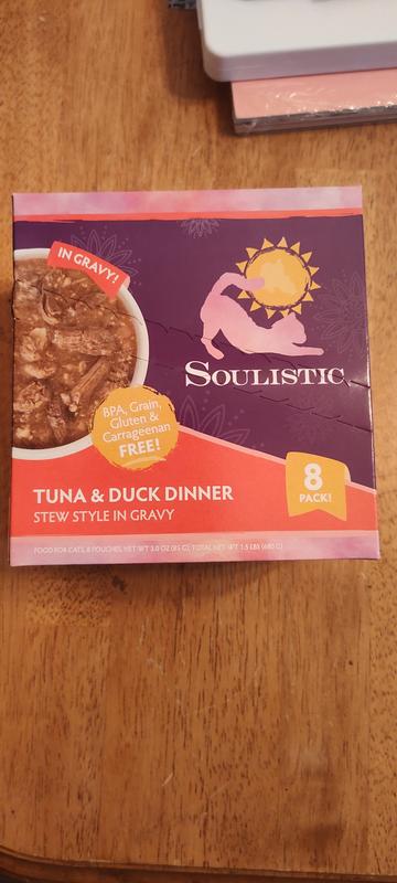 I wasn't sure about the flavors of this dinner because I had never served duck to my cats. What a surprise! They LOVED it, including the gravy. I'm not sure cats need a variety n their diets, but this one was welcomed. Soulistic was a delicious change and interesting product for my cats. The ferals I take care of also enjoyed a packet or two. I'm sure it was a treat from their usual kibble.