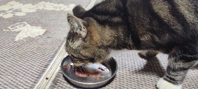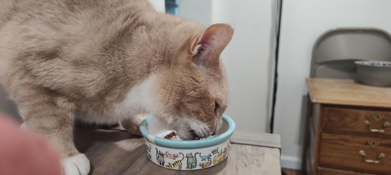 Meathead loves this food, i could barely get the dish down for him to eat he was so excited.i guess the smell of it was appealing to him. Some of the other kitties joined in with him but he jept pulling the dish away from them to bring it closer to him it was fun to watch