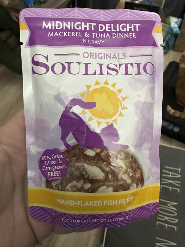 Soulistic Originals Midnight Delight Mackerel & Tuna Dinner in Gravy Wet Cat Food, 3-oz pouch, case of 8