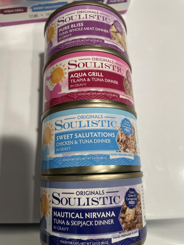 - DealSoulistic Originals Aqua Grill Tilapia & Tuna Dinner in Gravy Wet Cat Food, 5.5-oz can, case of 8$19.92 Chewy Price$18.92 Autoship PricePromo, Spend $100, Get $30 eGift Card with code NEWYEAR +1 deal