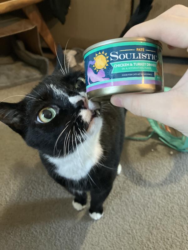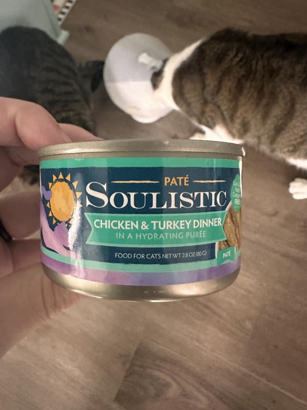 - DealSoulistic Paté Chicken Dinner in a Hydrating Purée Wet Cat Food, 2.8-oz can, case of 12$21.99 Chewy Price$20.89 Autoship PricePromo, Spend $100, Get $30 eGift Card with code NEWYEAR +1 deal