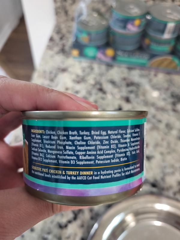 Soulistic Paté Chicken & Turkey Dinner in a Hydrating Purée Wet Cat Food, 2.8-oz can, case of 12