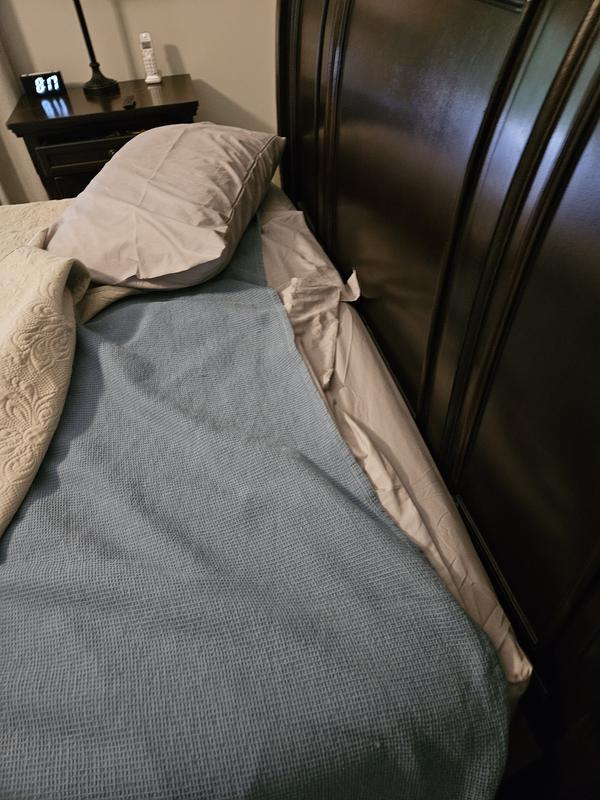 These sheets are super nice! They’re very soft and cozy and the slit in the middle makes it so much easier for our 12 year old Dutch shepherd when she climbs into