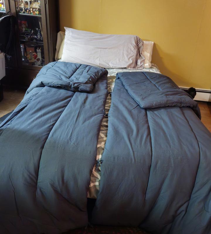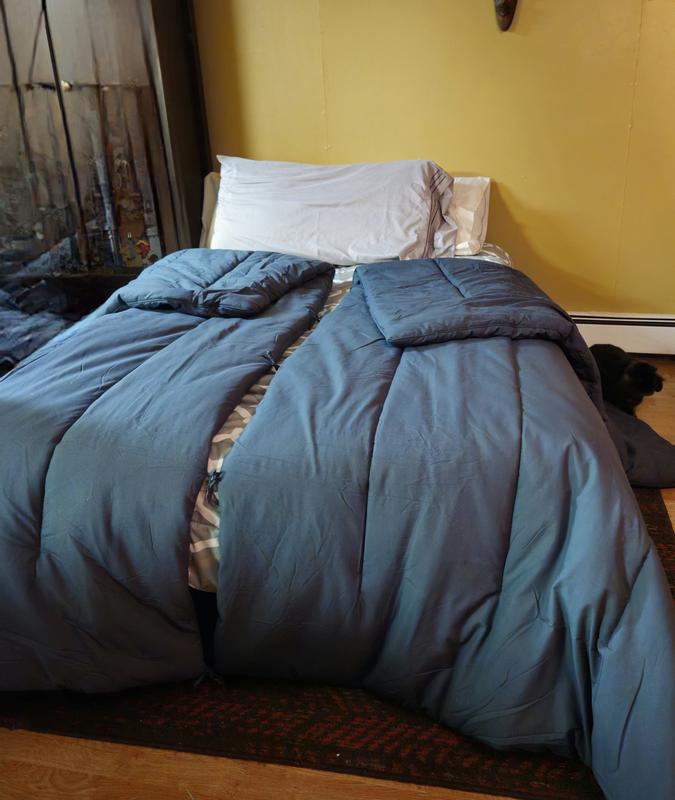 The weight of the comforter & the fabric are a quality you can feel. The split worked so I wasn't fighting for some blanket. I could pull my side over without creating a circus scene with cats bouncing everywhere. One side was enough to cover me but my partner is heavier so it didn't fully cover him. Another great thing about this is the instant heat.