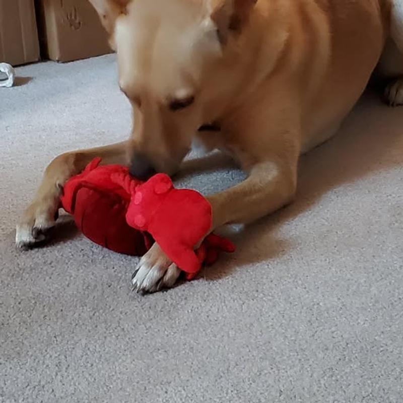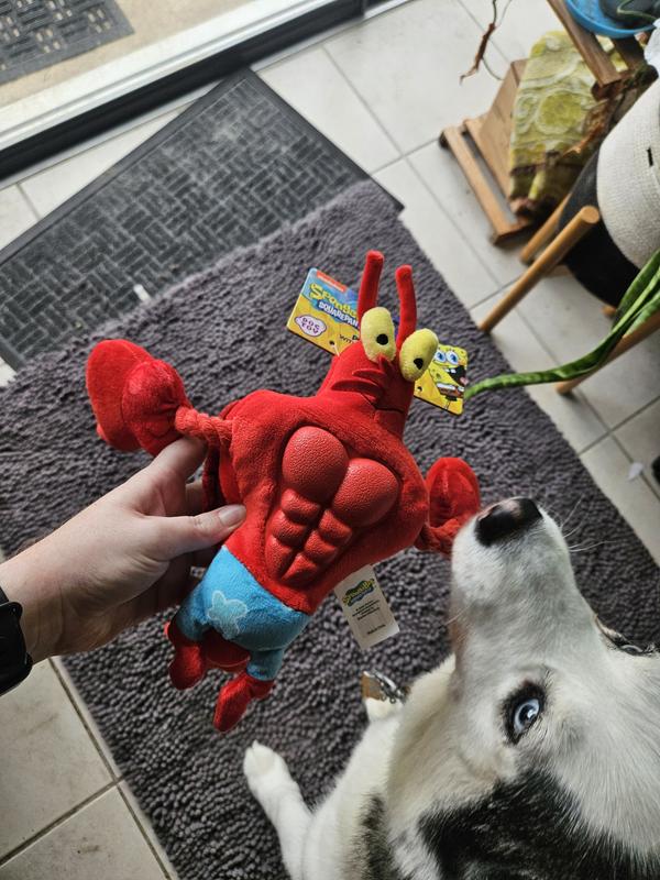 SpongeBob Larry Squeaky Plush with Hard Abs Chew Dog Toy, Red